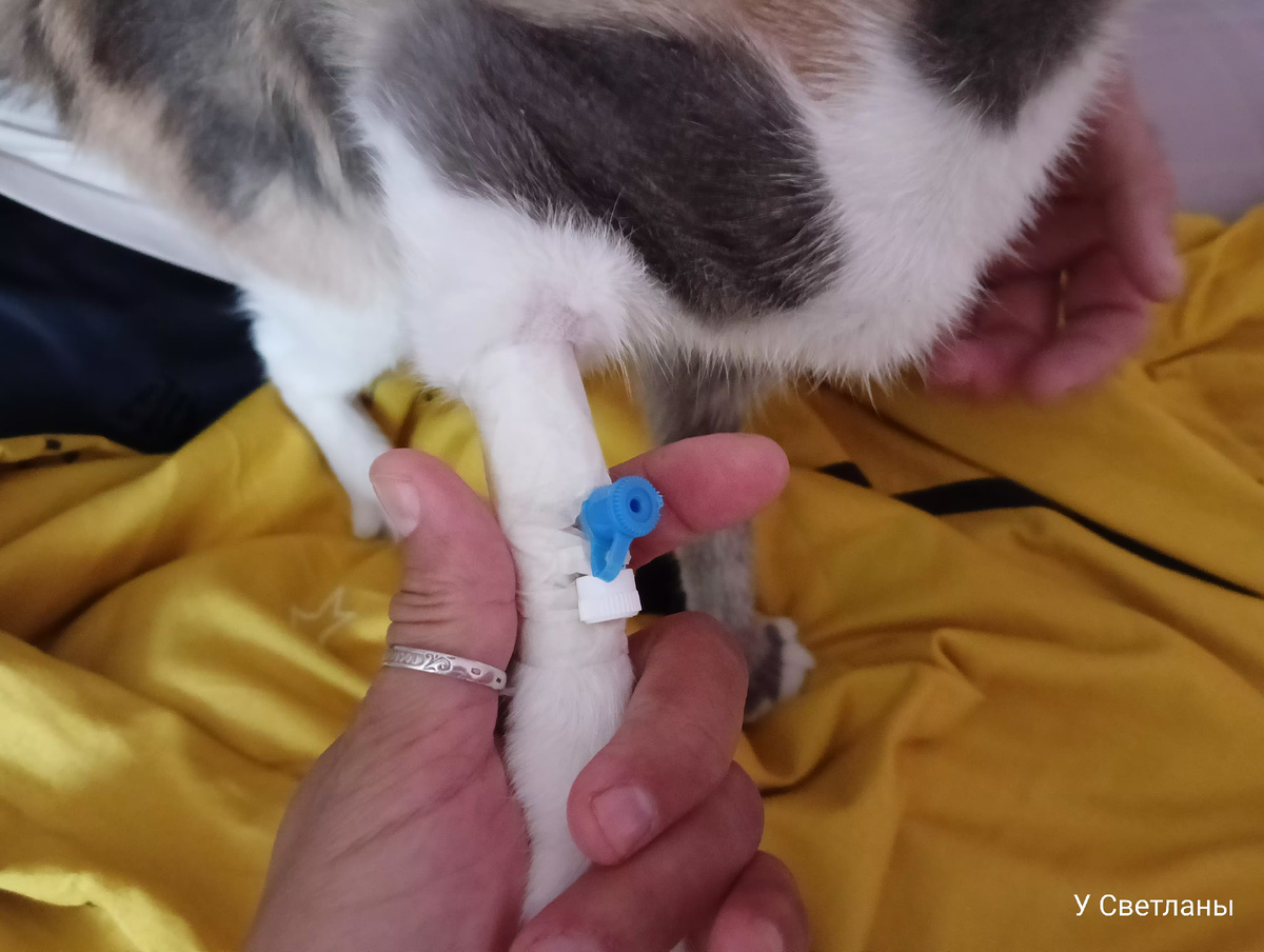 Утром в восемь, я поставила Ирочке капельницу в лапку через катетер, затем в двенадцать надо ставить будет другую - в холку. Будем наблюдать за ней сегодня.