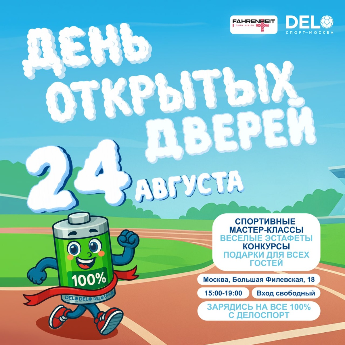 🎉 День открытых дверей через 2️⃣ дня! 🎉 Готовы зарядиться на новый спортивный сезон на все 100%? Тогда мы ждем вас 24 августа с 15:00 до 19:00 по адресу: Большая Филёвская, 18 На Дне открытых дверей Вы сможете: 🔵попробовать себя более, чем в 10 видах спорта совершенно бесплатно; 🔵получить подарки от партнеров; 🔵поучаствовать в семейной эстафете; 🔵принять участие в конкурсе рисунков мелками; 🔵испытать удачу в Мегарозыгрыше и ВЫИГРАТЬ ГОДОВОЙ АБОНЕМЕНТ ДелоСпорт! 😍 🔤🔤🔤🔤 🔤🔤🔤🔤🔤🔤🔤🔤🔤 🔤 Давайте вместе проводим лето ярким праздником спорта!