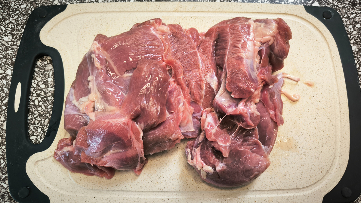 Я давно отказалась от покупных мясных деликатесов, предпочитая готовить их самостоятельно. Это не отнимает много сил, зато я уверена в качестве ингредиентов: только мясо и специи, которые нравятся именно мне. Ранее я уже делилась с вами рецептами запечённой куриной и индюшиной грудки, а также вяленой свиной вырезки. Ссылки на эти рецепты вы найдёте в конце этой статьи. А сейчас я поделюсь секретом приготовления рулета из бедра индейки. Постоянные подписчики моего канала знают, что все мои блюда отличаются простотой и скоростью приготовления. Я приобрела целое бедро индейки без костей, весом примерно 1 килограмм. Изначально оно выглядит довольно неровно. Я промыла мясо и постаралась придать ему форму прямоугольника, равномерно распределив толщину. Накрыв мясо пищевой плёнкой, я тщательно отбила его с обеих сторон. Внутри я присыпала солью, чёрным перцем и сушёным чесноком. Хотя можно использовать и свежий чеснок, я предпочитаю сушёный, так как он обладает более мягким и менее выраже