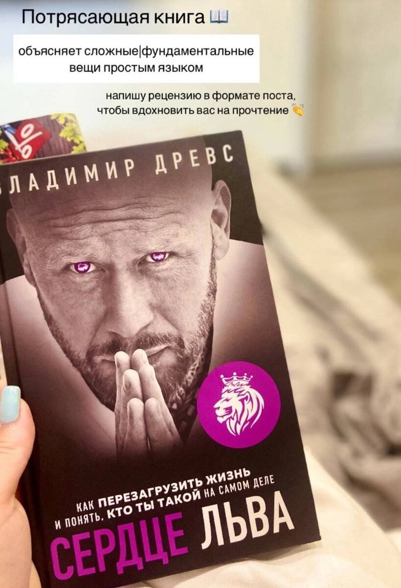 СЕРДЦЕ ЛЬВА 💜 — книга, которую ты должен прочить 🫵🏻 Рецензия на книгу Владимира Древса Начну с того, что эта книга для тех, кто хочет совершить внутренний прорыв. В независимости от того в какой вы сейчас ситуации, с каким багажом опыта и знаний находитесь, — вы способны найти ответы на фундаментальные вопросы в этой книге! Если захотите этого.. Владимир пишет об опыте абсолютно НЕрелигиозного человека, который знает, что такое БОЛЬ и открыл для себя магию исцеления. В первую очередь, это то, о чем я глаголю ежедневно. Это Вера, принятие и благодарность 🙏 Это Бог в разных его проявлениях. В рассматриваемой литературе смыслы раскрываются через его личную историю и знания полученные через Веды. Легкая в прочтении, она погружает читателя в реальный мир, где происходит магия открытий. Ещё одна цель 2025 достигнута — я познакомилась с Владимиром лично на авторском тренинге. Совершенно аутентичном… Я плакала, потому что во всеуслышание он говорит о том, что меняет ежедневно и м