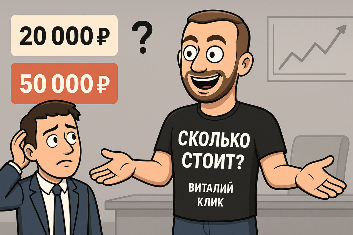 На самом деле, фиксированной стоимости услуг в маркетинге не существует. Один и тот же сайт и настройка рекламы могут стоить: Всё зависит от двух вещей: Продажа в переписке почти всегда = маленький чек. Большие чеки заключаются на: Чем ближе контакт с клиентом, тем выше шанс продать дорого. И ещё важнее — как именно вы это делаете. Если вы сами не верите в ценность своей работы, вы никому её не продадите. Вспомните амвеевцев или продавцов пылесосов Kirby: они были убеждены, что их продукт спасёт мир. Эта вера продавала за них (хоть они и потеряли всех своих друзей:) ) Технический специалист продаёт рекламу, клики, заявки. Но предпринимателю это малоинтересно. Ему нужны деньги. Поэтому продаются: Формулировка должна быть именно в этих категориях. Пример: «Сейчас вы зарабатываете 3 млн. Мы можем увеличить на 1,5 млн в месяц. За год это +18 млн. Готовы ли вы вложить 800 000 рублей, чтобы получить эти результаты?» Такой разговор гораздо эффективнее, чем: «Я сделаю вам сайт и рекламу». У мн