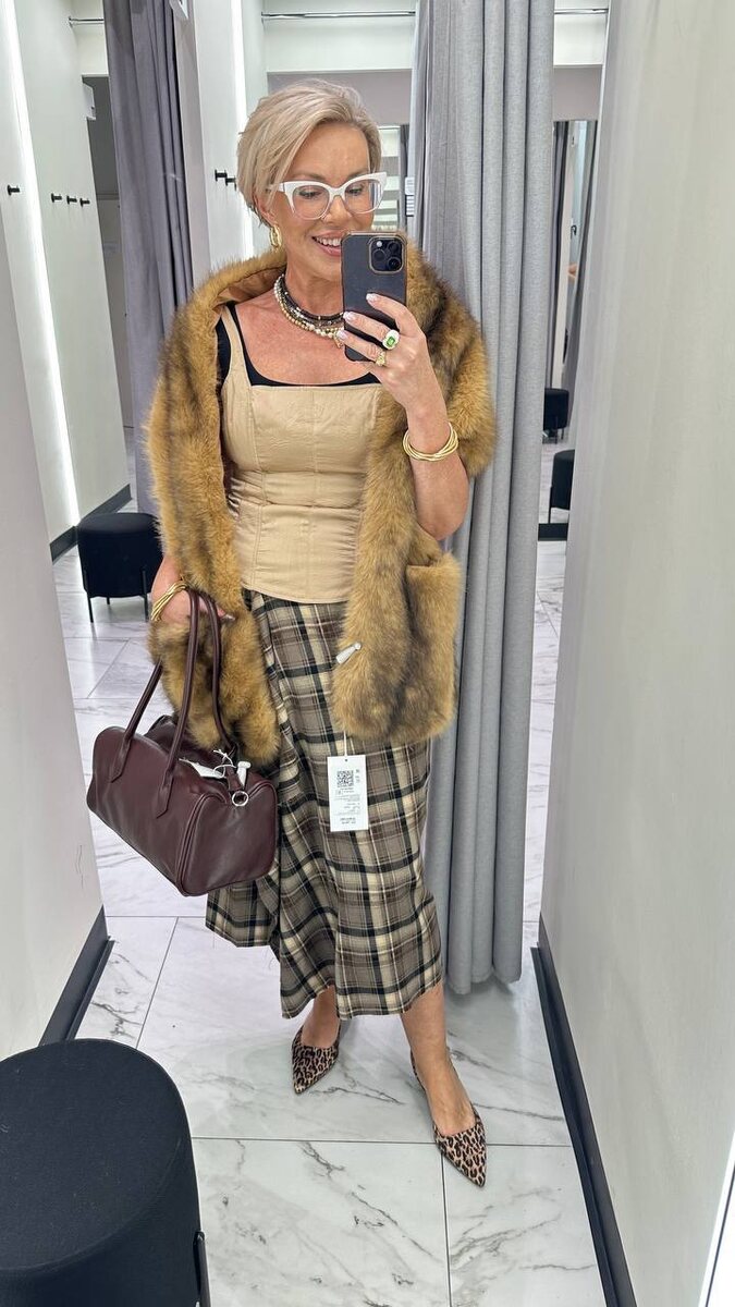 Здравствуйте, дорогие читатели! В последние годы меня очень радует ассортимент Love Republic, и сегодня я покажу вам часть обзора осенних новинок этого бренда. Конечно, всё примерю и дам ссылки. Полный обзор будет вскоре доступен в формате видео для премиум-подписчиков 3-го уровня. Не забывайте ставить лайк за мои старания! Первое, что я приметила в магазине, и сразу же забрала с собой, - это объемный меховой шарф с карманами. Идеальная осенняя покупка для таких же мерзлячек, как я, которые любят тепло и уют. Ссылка на шарф Вместительная сумка модной вытянутой формы в актуальном цвете с идеальной длины ручками, позволяющими носить ее как в руках, так и на плече. Ссылка на сумку Корсетный топ из жатого сатина я надела поверх своей майки, мне так нравится больше. Ссылка на топ Достаточно акцентная асимметричная юбка в клетку, которая хорошо будет смотреться с сапогами в осенних образах. Ссылка на юбку Образ в стиле городской сумасшедшей в хорошем смысле этого слова. Большинство его, одна
