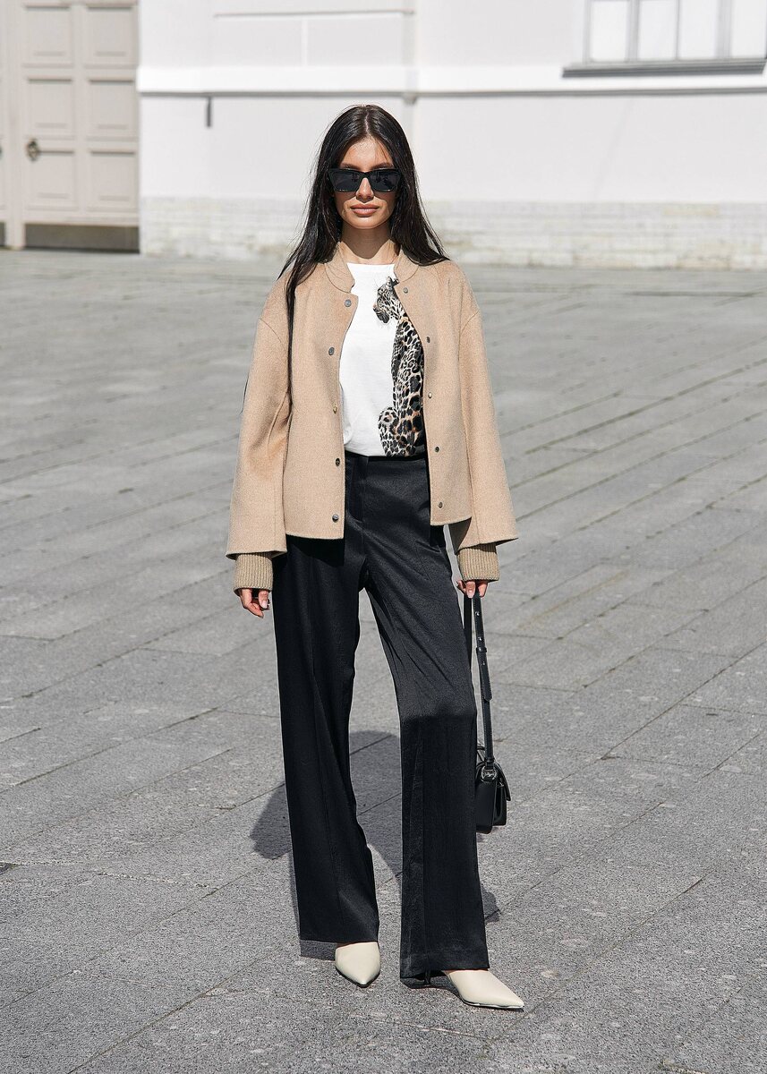 Образ недели 🐆 Базовая элегантность в повседневном ритме: свободные чёрные брюки и футболка с анималистичным принтом уравновешены светлой курткой в оттенке верблюжьей шерсти. Ботильоны с острым носом и сумка добавляют строгости, а солнцезащитные очки — лёгкую дерзость. Товары доступны онлайн на сайте mcbuy.ru и оффлайн в бутиках Москвы и Санкт-Петербурга.