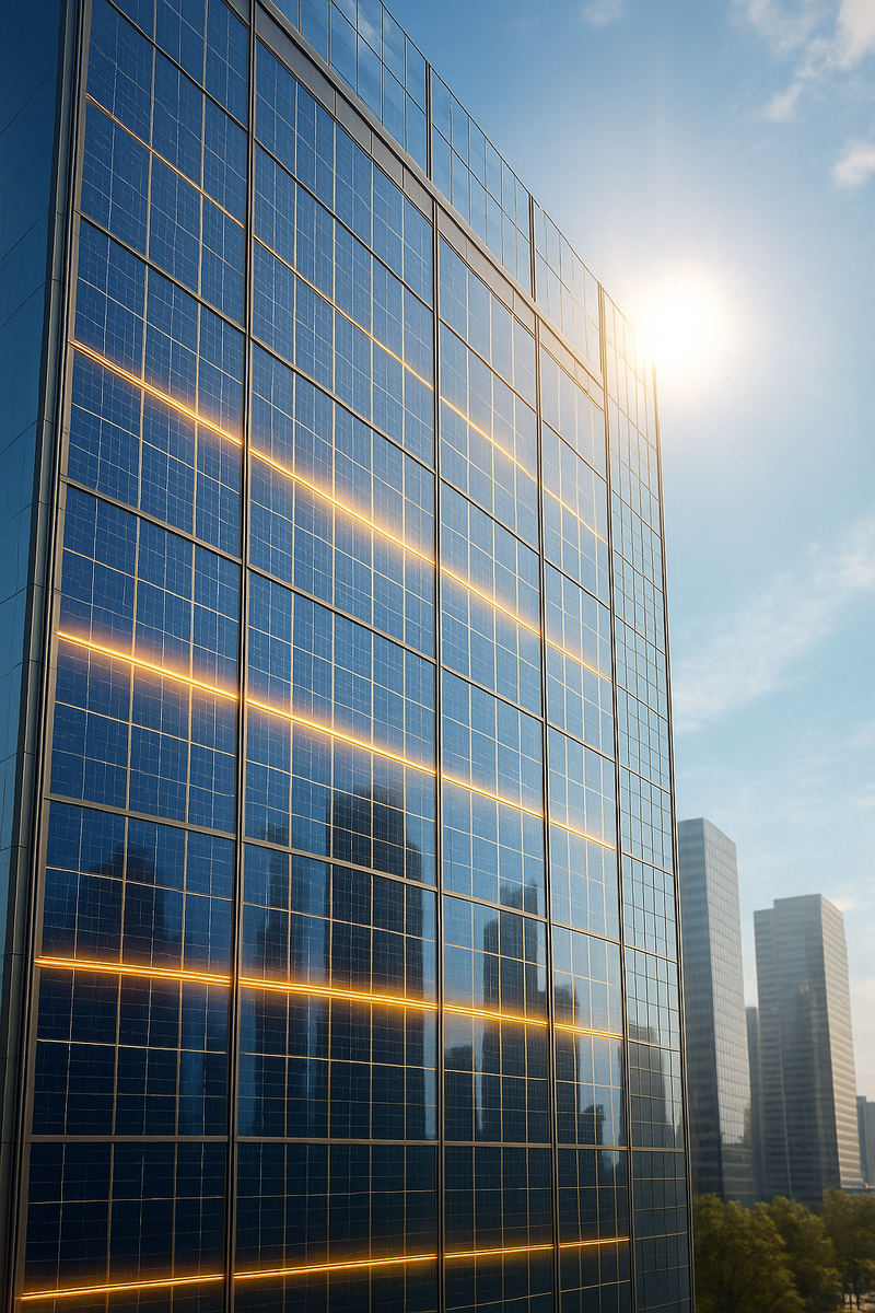 Мы привыкли видеть солнечные панели на крышах. Но что если каждый стеклянный фасад превратится в энергетическую установку? Инженеры создали полупрозрачные солнечные элементы, которые можно интегрировать в окна и стены. Они пропускают свет, но собирают его энергию и превращают в электричество. Такое решение идеально для городов, где каждый квадратный метр площади ценен. Традиционные солнечные батареи используют кремний, который непрозрачен. Новые панели базируются на тонкоплёночных материалах, таких как перовскиты, или органических полупроводниках. Они поглощают лишь определённые диапазоны света, пропуская остальное. Например, панели могут собирать ультрафиолет и инфракрас, оставляя видимый спектр. Это позволяет помещению оставаться светлым, но при этом генерировать энергию. Панели соединяются в сеть и подключаются к аккумулятору или электросети здания. Солнечные фасады снижают потребление энергии из сети и уменьшают счета за электричество. Они также уменьшают тепловую нагрузку на здани