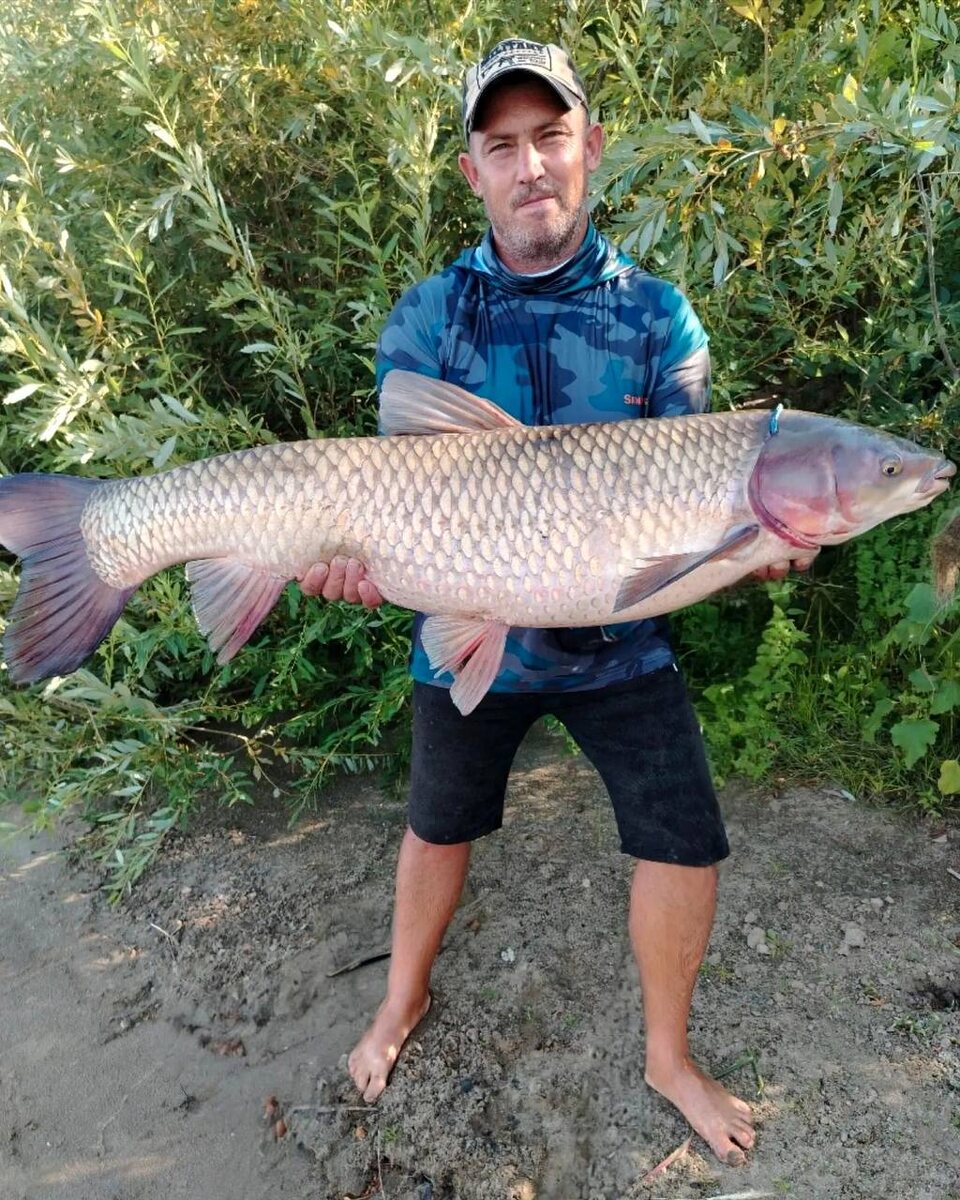 Рыбак из Волгоградской области Денис Линников поймал гигантского белого амура в Ленинском районе
