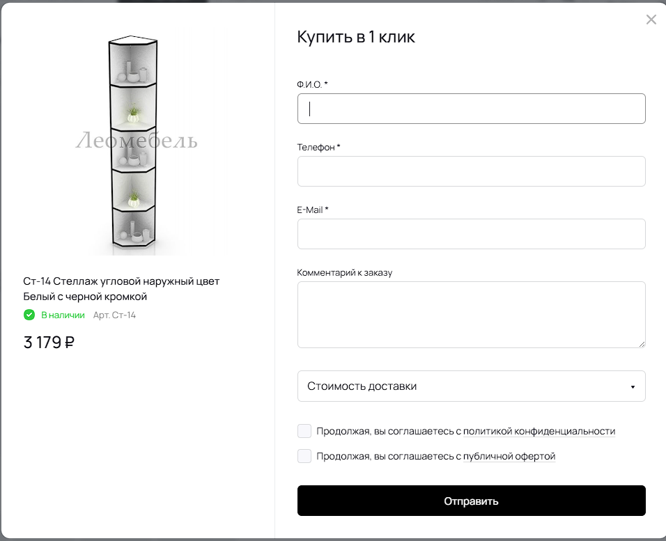 Интернет-магазин Leo Mebel - пример того, как хороший ассортимент может "потеряться" из-за перегруженного интерфейса и сложного пути покупки. Мы протестировали сайт от первого клика до оформления заказа — и нашли ряд проблем, которые мешают продавать. Кнопка «Купить в 1 клик» превращается в 7-шаговый квест: ФИО, телефон, почта, комментарий, стоимость доставки. Такой путь убивает импульсную покупку. Как можно исправить: Оставить только имя и телефон — остальное уточнит менеджер. Пять и более вариантов: транспортные компании, курьер, самовывоз, СДЭК, Деловые линии. Без пояснений это вызывает «паралич выбора». Как можно исправить: Показывать 1–2 самых популярных варианта, остальные — по клику «Показать ещё». В тёмном режиме текст сливается с фоном, кнопки исчезают, сайт становится нечитабельным. Как можно исправить: Показывать 1–2 самых популярных варианта, остальные — по клику «Показать ещё». После добавления товара в корзину навигация пропадает — остаётся только логотип. Возвращени