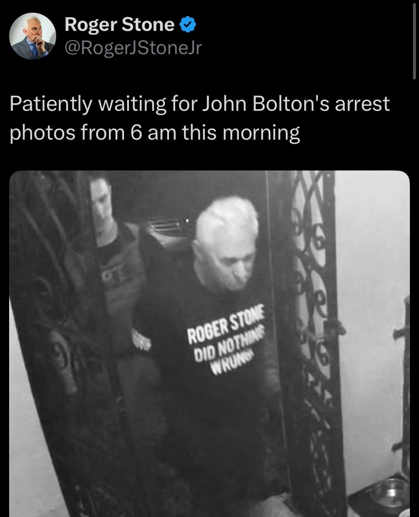 Trump ally Roger Stone CAN'T wait to see John Bolton's 'arrest photos