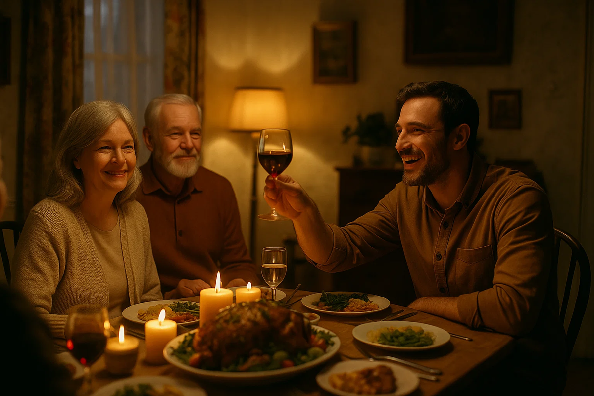 – Ну, за главу семьи! – Олег поднял бокал с искрящимся вином. – Пап, за тебя! За твои шестьдесят пять, в которые я, честно говоря, до сих пор не верю. Спасибо вам с мамой за всё. За то, что у меня было такое… такое безоблачное детство. Я всегда знал, что дома меня ждут любовь и покой. И это, наверное, главный подарок, который вы мне сделали. За вас!