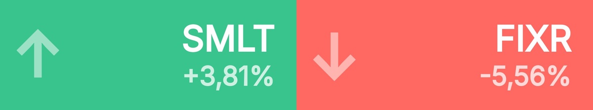 🔺 Топ-10 лидеров роста среди крупнейших акций: ГК Самолет • 1 212 ₽ • 3,81% Мосэнерго • 2,25 ₽ • 3,76% Группа Поз • 1 381 ₽ • 3,09% Ренессанс • 134 ₽ • 3,05% Алроса • 48,30 ₽ • 2,57% ПИК • 659 ₽ • 2,54% Медикал Гр • 1 265 ₽ • 2,49% Полюс • 2 198 ₽ • 2,36% РуссНефть • 124 ₽ • 2,18% Совкомфлот • 89,39 ₽ • 2,15% 🔻 Топ-10 лидеров падения среди крупнейших акций: Фикс Прайс • 0,87 ₽ • -5,56% Банк Санкт • 367 ₽ • -5,46% Европлан • 618 ₽ • -1,39% Татнефть • 672 ₽ • -1,35% Татнефть п • 637 ₽ • -0,93% КЦ ИКС 5 • 2 926 ₽ • -0,81% Астра • 410 ₽ • -0,63% Группа Рус • 131 ₽ • -0,58% Русал • 33,57 ₽ • -0,39% Аэрофлот • 63,08 ₽ • -0,38%