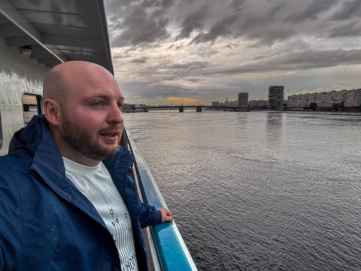 За моими плечами пять морских круизов и один скандал на борту, а тут... Представляете, за 31 год жизни в Петербурге я впервые отправляюсь в круиз прямо от речного вокзала на проспекте Обуховской Обороны. Никогда еще не ходил в круизы по рекам России. Мой корабль — теплоход «Русь» компании «Водоход». Маршрут звучит как мини-приключение: Санкт-Петербург — Мандроги — Валаам — обратно в Петербург. Почти три дня в пути: три ночи на борту и два полных дня на стоянках — один в Мандрогах и один на Валааме. Заселился без проблем: на стойке спросили паспорт и посадочный, а в каюте меня ждал приятный бонус — двухместный номер, но жить я там буду один. Вторую кровать аккуратно убрали, так что получается уютный личный «домик» на воде. Сейчас мы уже идём по Неве, в районе Обухово. Небо над городом — классическое питерское, свинцовое и тяжёлое. На палубе собрались люди: кто машет проезжающим мимо машинам, кто просто стоит и вдыхает влажный речной воздух. Я тоже среди них с приятным ощущением предстоя