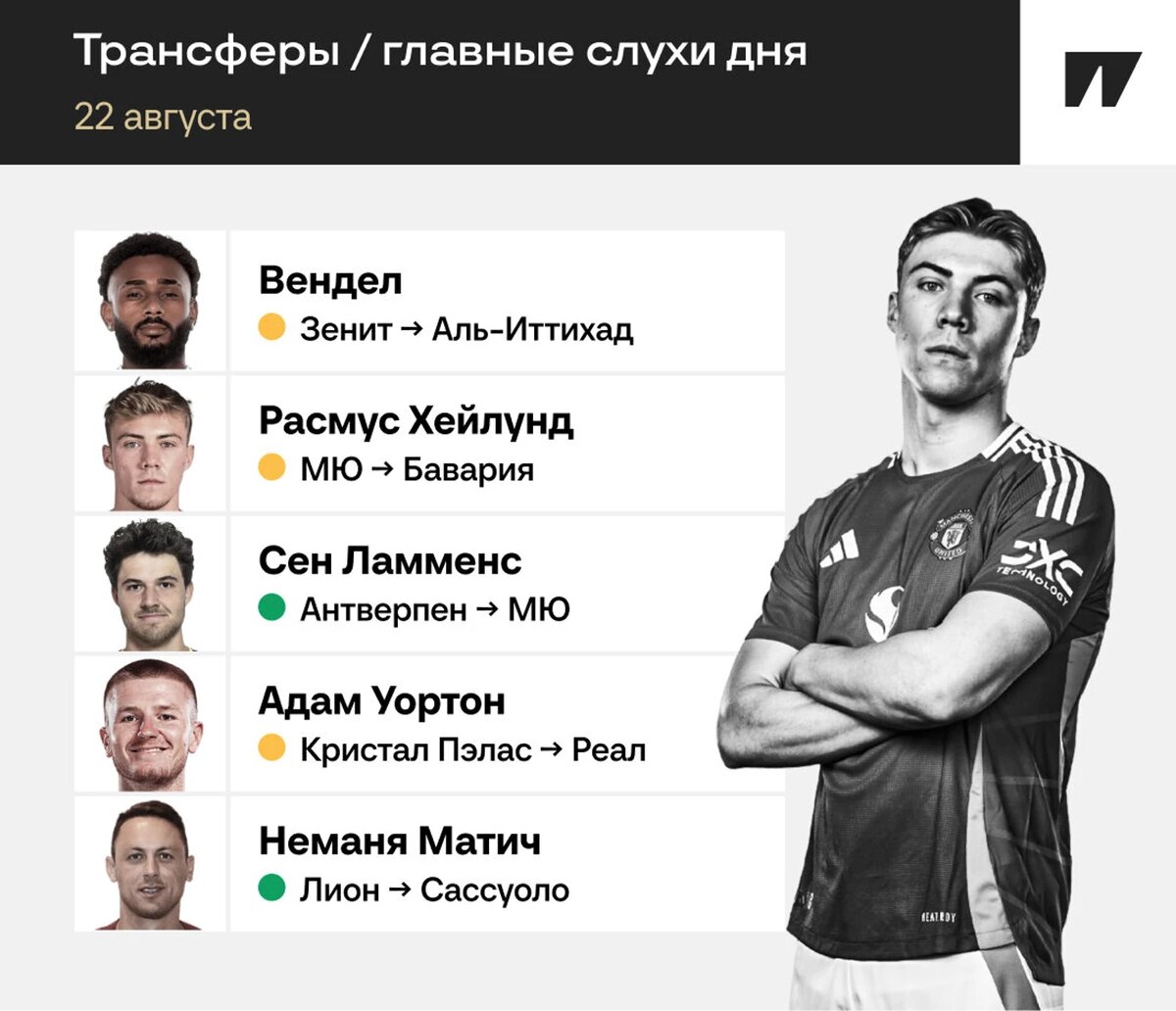 Действующий чемпион Саудовской Аравии уже интересовался полузащитником «Зенита» в июле. Тогда бразильский инсайдер Вене Казагранде сообщал, что «Аль-Иттихад» даже предложил больше 30 миллионов евро, но сам футболист отказался, так как хотел играть в Бразилии. Босс «Зенита» Александр Медведев опровергал такое предложени, но не сам интерес к игроку. Теперь «Аль-Иттихад» вновь пришел за Венделом. Говорят, уже отправили «Зениту» официальное предложение. 🟡 – информируют саудовские источники: Al Riyadh и газета Hatrick. Медведев привычно опровергает, но тоже не интерес, а само предложение: «Пока не получали и не получили». Мюнхенцы рассматривают возможность аренды датчанина, однако «Бавария» также изучает другие варианты, включая игроков из «Челси» — Николаса Джексона и Кристофера Нкунку. 🟡 – Журналист немецкого Sky Флориан Плеттенберг сообщает, что «Наполи» имеет больше шансов заполучить Кристиана Хейлунда. Неаполитанский клуб активно ведет переговоры с «Манчестер Юнайтед» и готов предло