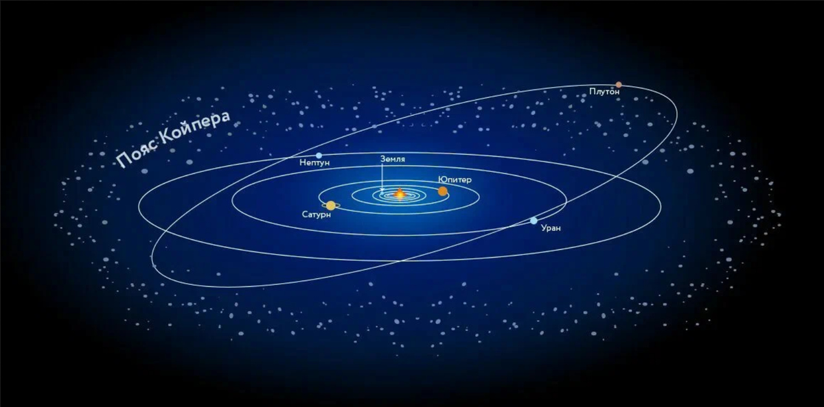 Пояс Койпера — это гигантское кольцо изо льда и камня за орбитой Нептуна. Здесь находятся тысячи карликовых планет, включая Плутон, Эрис и Седну, а также миллионы мелких тел — от ледяных глыб до астероидов.