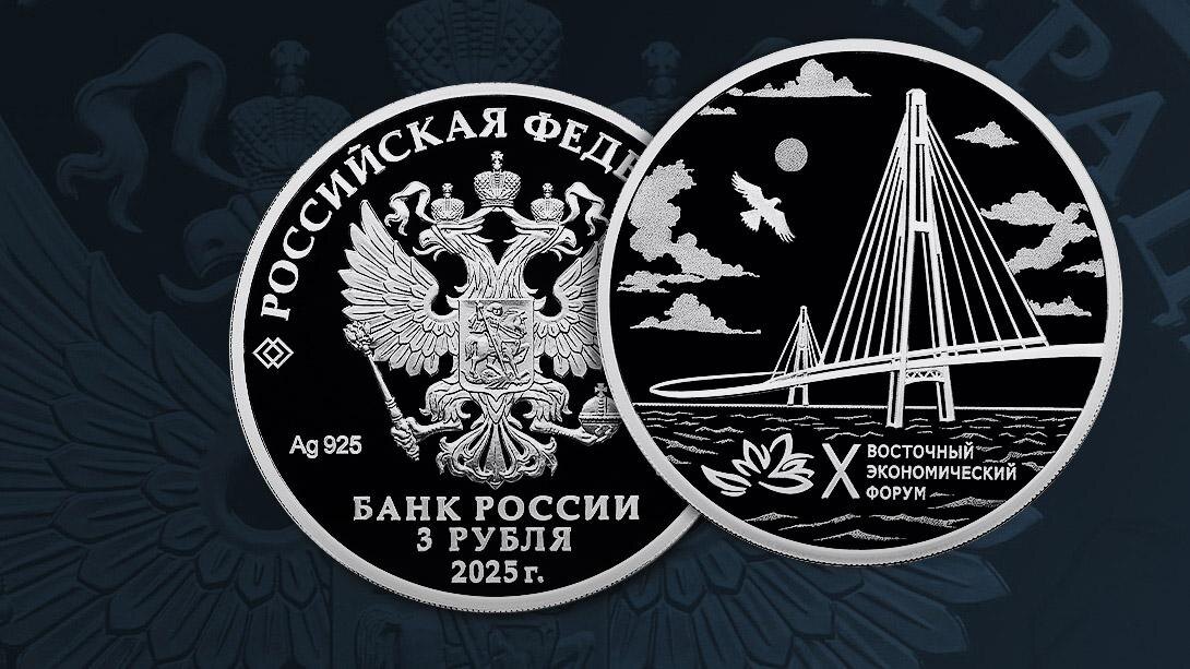 25 августа в обращение поступит памятная серебряная монета номиналом 3 рубля, выпущенная Банком России в честь десятилетия ВЭФ. Тираж — 3000 штук. На монете изображен Русский мост — один из символов города Владивостока, где проходит Восточный экономический форум. Главная площадка форума находится на о. Русском в кампусе Дальневосточного федерального университета. ВЭФ-2025 пройдет с 3 по 6 сентября. Главной темой форума станет сотрудничество во имя мира и процветания. Деловая программа включает около 90 сессий.
