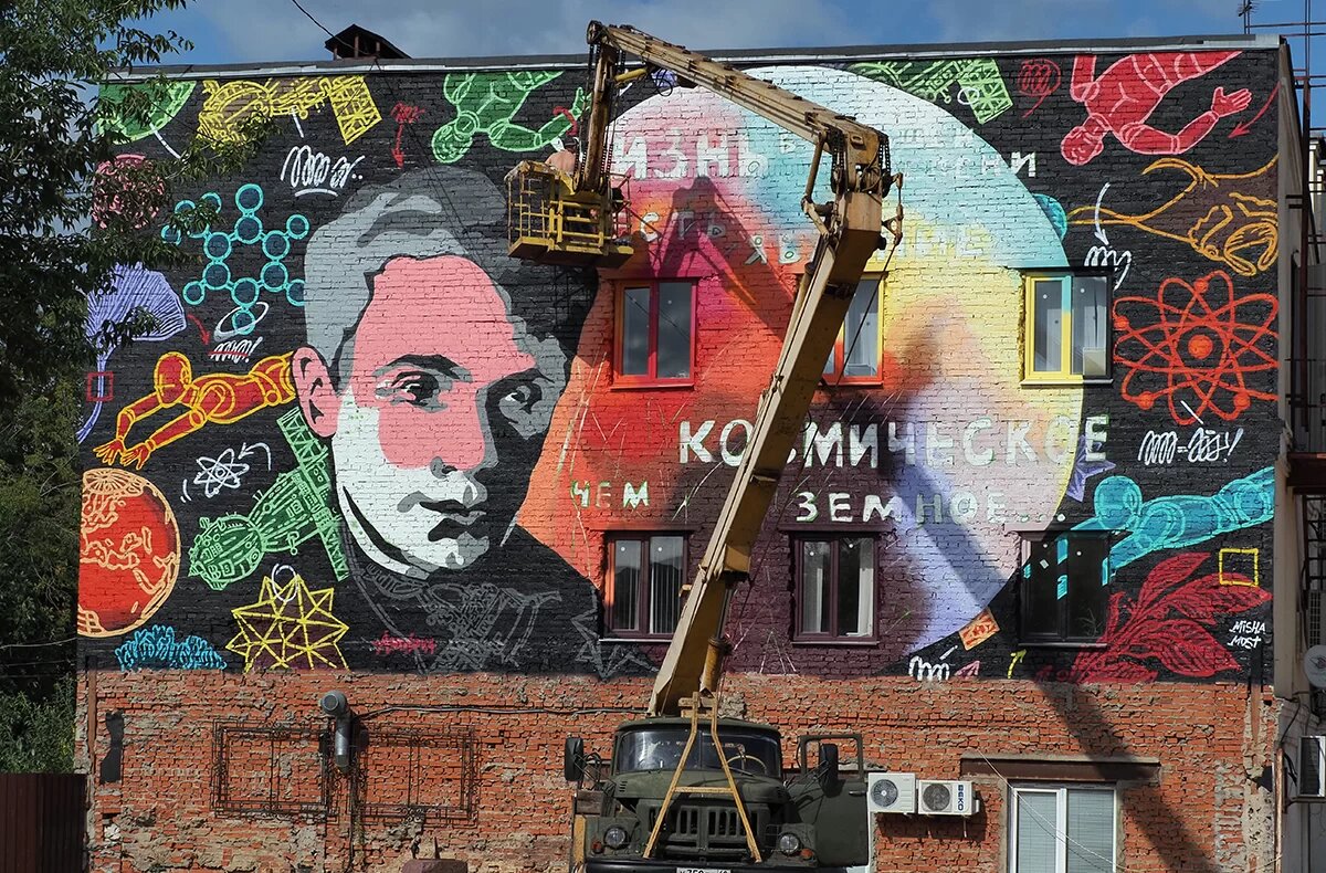 «В этом году фестиваль получит масштабное развитие», – прокомментировал губернатор Владислав Шапша. Он проходит второй раз в рамках нацпроекта «Туризм и индустрия гостеприимства», его организаторы – Центр развития туризма «Калужский край». Художники, которые профессионально создают изображения на стенах зданий и других поверхностях, подготовили девять граффити и муралов. Благодаря их мастерству дополнительные смысловые краски появились, к примеру, на одном из калужских троллейбусов, на лестнице, ведущей к набережной Яченского водохранилища, на фасаде гостиницы «Приокская», во дворе школы № 5, у здания ТЮЗа. Тема работ нынешнего фестиваля – «Космическое поселение». Его девиз: «Здесь дворы становятся планетами, а маршруты — созвездиями».