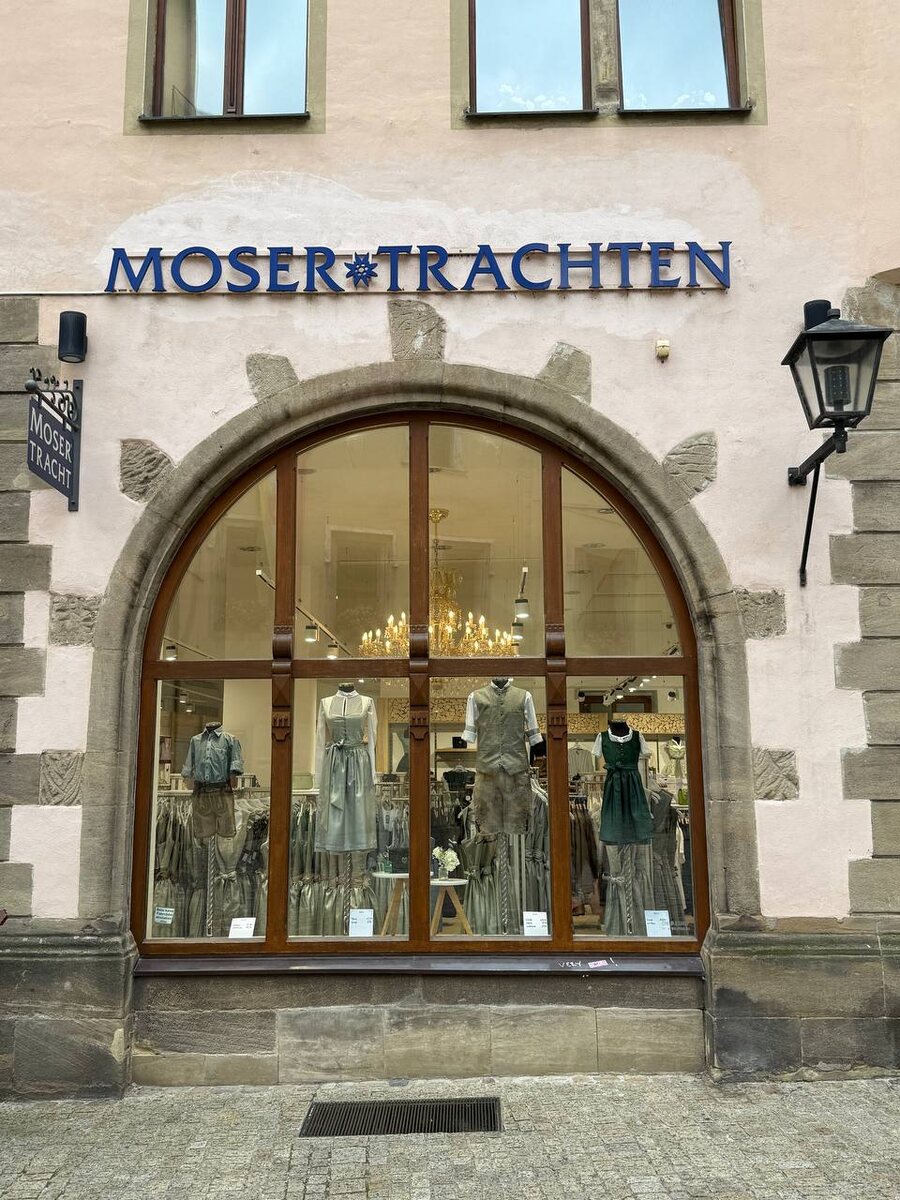 Вещь, которой мне очень не хватает в России (и прям грустно, что этого нет) — это традиционные костюмы, которые люди реально носили бы. Не косплей, не лубочные смешанные из всех регионов сценические костюмы, не подиумные версии — а вот реально аутентичные, жизненные, с любовью искуссно сшитые из хороших тканей, популярные. Админ прямо сейчас проводит свой отпуск на юге Германии, и тут в центре города магазины традиционных костюмов буквально на каждом углу. Есть маленькие бутики с дорогими костюмами, есть супермаркеты, и даже отдел в tkmaxx. Местный костюм называется Tracht (трахт), такие носят в Баварии, Австрии, Тироле и Лихтенштейне. Как обычно, в основе крестьянская нарядная одежда, которую на волне роста национального самосознания в XIX веке стали надевать представители и других сословий. И носят до сих пор. Частично это тоже карнавальная история — униформа работников туристической сферы, официантов, а еще — наряд на октоберфест. Но их и реально используют в жизни, надевают на