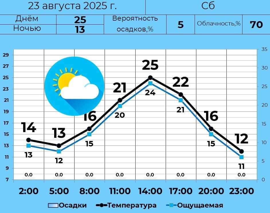🌤Завтра, 23 августа, в Кургане ожидается переменная облачность, без осадков