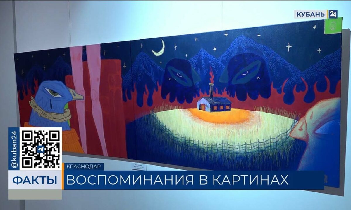 Видео канала «Кубань 24» Сгоревший дом навсегда отпечатался в воспоминаниях художника Ивана Минькова. На этом холсте глазами уже взрослого человека отражен детский страх. «Это ода родному дому, в котором я родился и вырос, его больше нет и всего того детства, которое там осталось», — делится художник Иван Миньков. Четверо молодых творцов в рамках экспозиции исследуют самый интересный этап жизни. У каждого участника выставки для вдохновения есть свои воспоминания из детства. «Главная тема всей выставки — детство. Каждый из художников по-разному проживал этот период, именно поэтому работы так отличаются друг от друга. Если брать одну из инсталляций Германа Инга, то сразу вспоминается Данко, который светил своим сердцем людям в густом лесу. Герой вырывает свое сердце, как и художник отрывает часть себя ради зрителя», — сообщает корреспондент телеканала «Кубань 24» Даниил Бескровный. Александр Цыплаков собрал в своих работах героев, вдохновляющих на приключения. Герман Инг демонстрирует пр