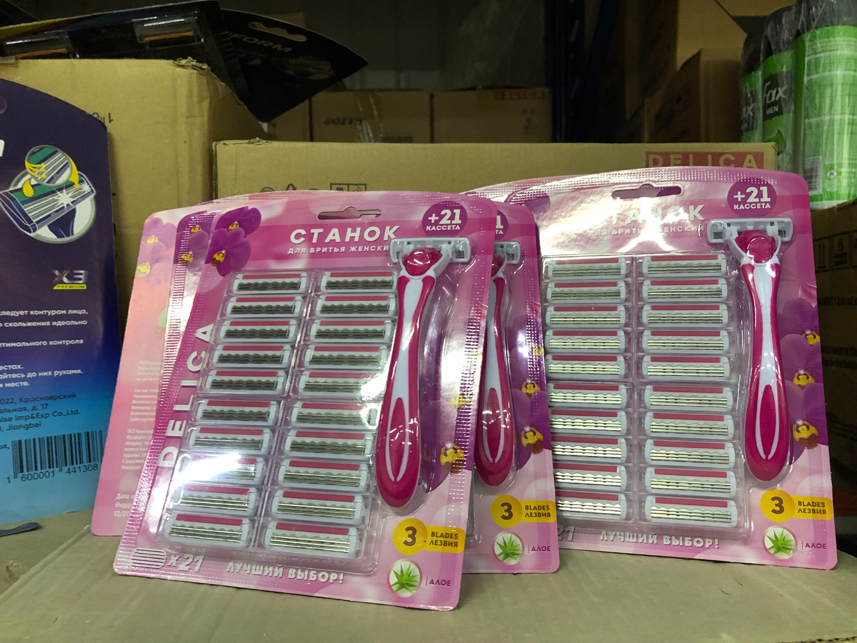 В продаже есть бритвенный набор для женщин. В наборе станок и 21 кассета с тройным лезвием и увлажняющей полоской с алоэ. Удобный станок с плавающей головкой. Лезвия из нержавеющей стали с тефлоновым покрытием. Эргономичная ручка для комфортного использования. Подвижная головка повторяет контуры тела. Набор обеспечит комфортное бритьё и уход за кожей на долгое время. Производитель Китай. Стоимость 219 рублей.