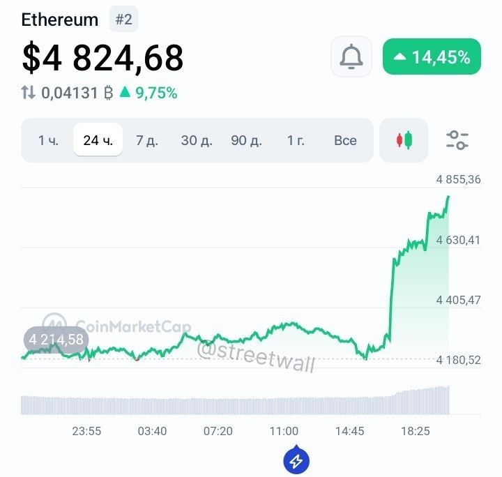 Эфир преодолел $4800 и стремится к историческому максимуму в $4891