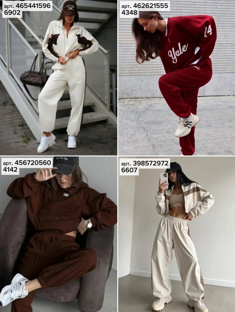 Эта двадцатка закрывает все сценарии: от ветровочных прогулок до cozy-комфорта в поездках и съёмок для Reels. Хотите остроты — берите антрацитовые или колорблок-модели (346490190, 365100438, 342815906). Нужна база — выбирайте серые и молочные костюмы со стойкой (273434021, 463002431, 430927075). Тяга к тёплой палитре? Шоколад и капучино (456720560, 334421826, 478550135, 317450842, 430899619) соберут целую «кофейную» капсулу. А если любите «кампус» — бордовый Yale (462621555) ваш фаворит.