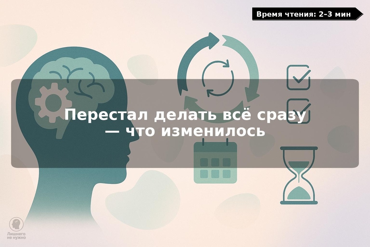 Коротко: мой опыт про «Перестал делать всё сразу — что изменилось» и что сработало на практике. Контекст: привычки и ожидания окружающих незаметно давят; без осознанности легко уйти в сравнение, спешку и бесконечную занятость. Что я попробовал: