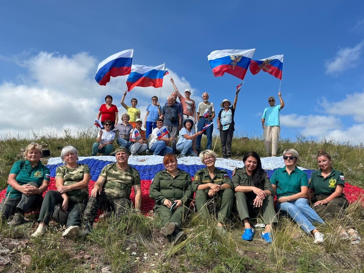Минусинцы подняли на вершину горы Шишка российский триколор из маскировочных сетей В День государственного флага России руководитель Минусинского комитета семей воинов отечества Евгения Тефель и волонтёры города подняли на вершину горы Шишка, высота которой составляет 662 метра, триколор размером 4 на 6 метров. Полотно создано из маскировочных сетей в цветах российского флага, что символизирует единство и силу нашего народа. В акции также приняла участие руководитель комитета семей воинов Отечества Донецкой народной республики Анжелика Байрачных, находящаяся сейчас в Минусинске. Подробнее: https://krasrab.ru/news/society/48593