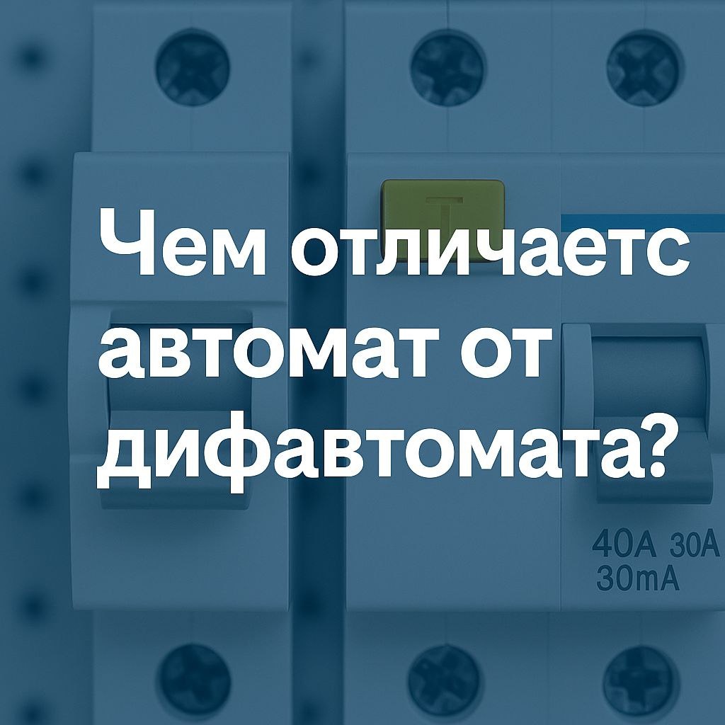 Чем отличается автомат от дифавтомата? Многие путают эти устройства, но на самом деле они выполняют разные задачи. 🔌 Автоматический выключатель (автомат) Защищает проводку от перегрузки и короткого замыкания. Не спасает человека от удара током. ⚡ Дифавтомат (АВДТ) Совмещает в себе автомат + УЗО. Защищает и проводку, и человека. 📍 Главное отличие: Автомат — только от пожара и перегрузки. Дифавтомат — ещё и от поражения электричеством. ✅ Итог: Если нужна простая защита проводки — достаточно автомата. Если хочется максимальной безопасности — ставим дифавтомат.