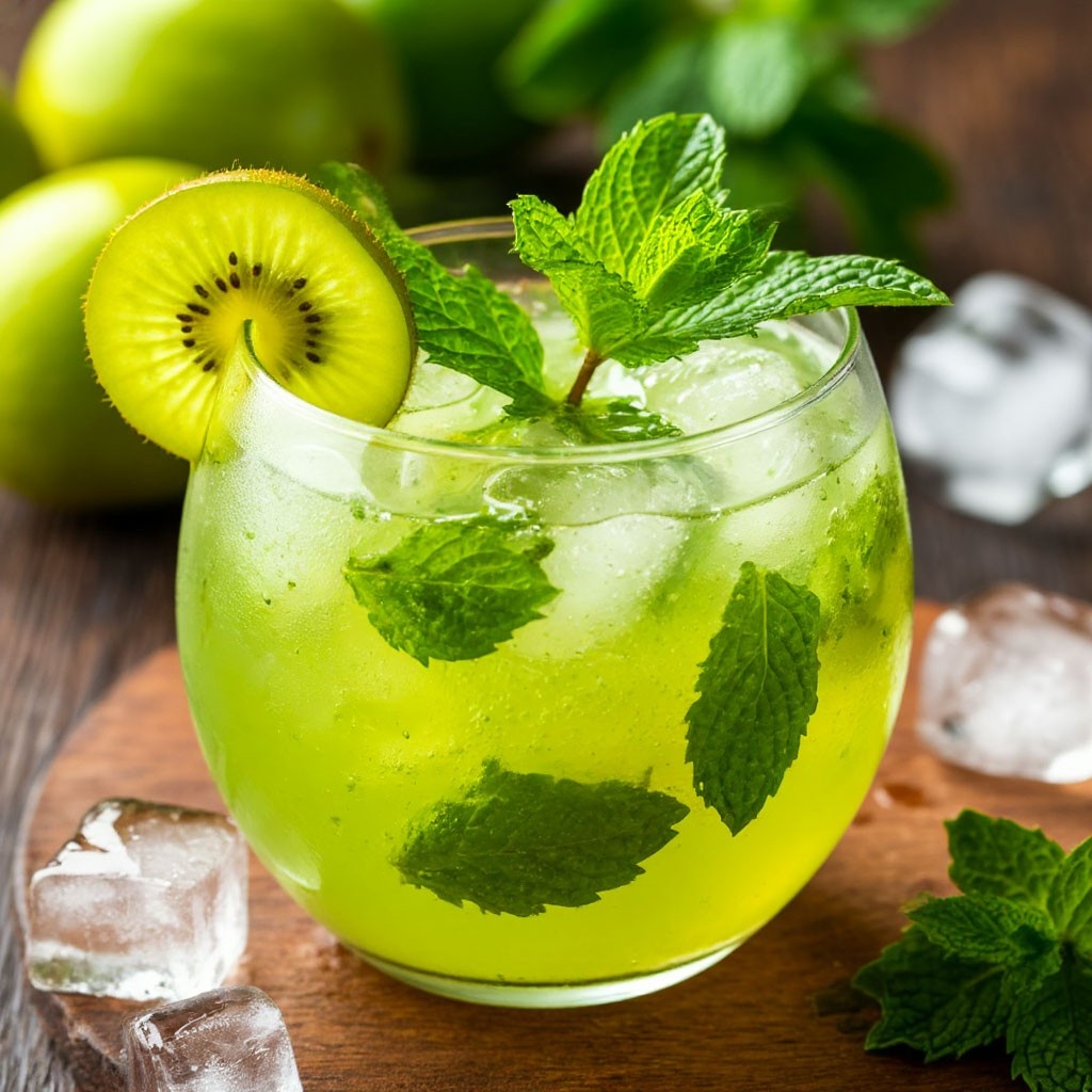Освежающий лимонад из киви и мяты - прекрасный способ утолить жажду. Киви придает сладость, лимон добавляет кислинки, а мята дарит приятную прохладу. Получается классный напиток, который взбодрит вас в любую погоду. Сейчас разберём подробнее как его сделать, чтобы вы тоже могли насладиться им дома. Что нам понадобится: Как приготовить: 1. Сначала делаем сироп. В чашку с кипятком высыпаем сахар и размешиваем, пока не растворится. Пусть остынет. 2. Киви чистим и режем на куски. У лимона срезаем кожуру (белая часть горчит!) и режем дольками. 3. Кидаем киви и лимон в блендер. Туда же льём остывший сироп и взбиваем в кашу. Это будет основа нашего лимонада. 4. Берём кувшин побольше и накидываем туда льда. Сверху выливаем фруктовую кашу и добавляем немного помятой мяты. Аккуратно перемешиваем. 5. Потихоньку наливаем газировку, пробуя лимонад. Если кисловато – добавляем сиропа. Если сладко – доливаем газировки. 6. Разливаем по стаканам. Для красоты можно кинуть листик мяты или дол