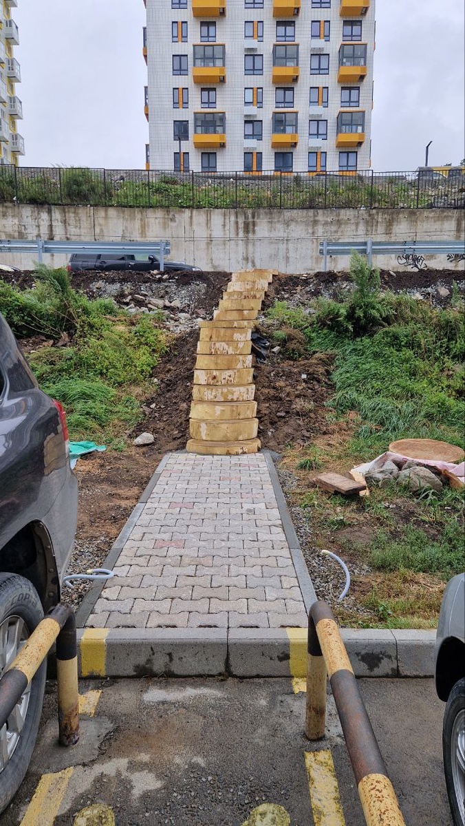 В сфере ЖКХ важен юмор (специфический конечно) и самоирония, иначе можно приуныть очень быстро без такой брони. Дмитрий, председатель ТСЖ на Сочинской 1 вновь демонстрирует всё это. Помните ту шедевральную лесенку из спила деревьев? Теперь к ней пристыкована дорожка из брусчатки. Тут всё по классике, но зато своими руками. Восторгаемся соседями с очень-умелыми золотыми руками! ❕ @patrokl.info