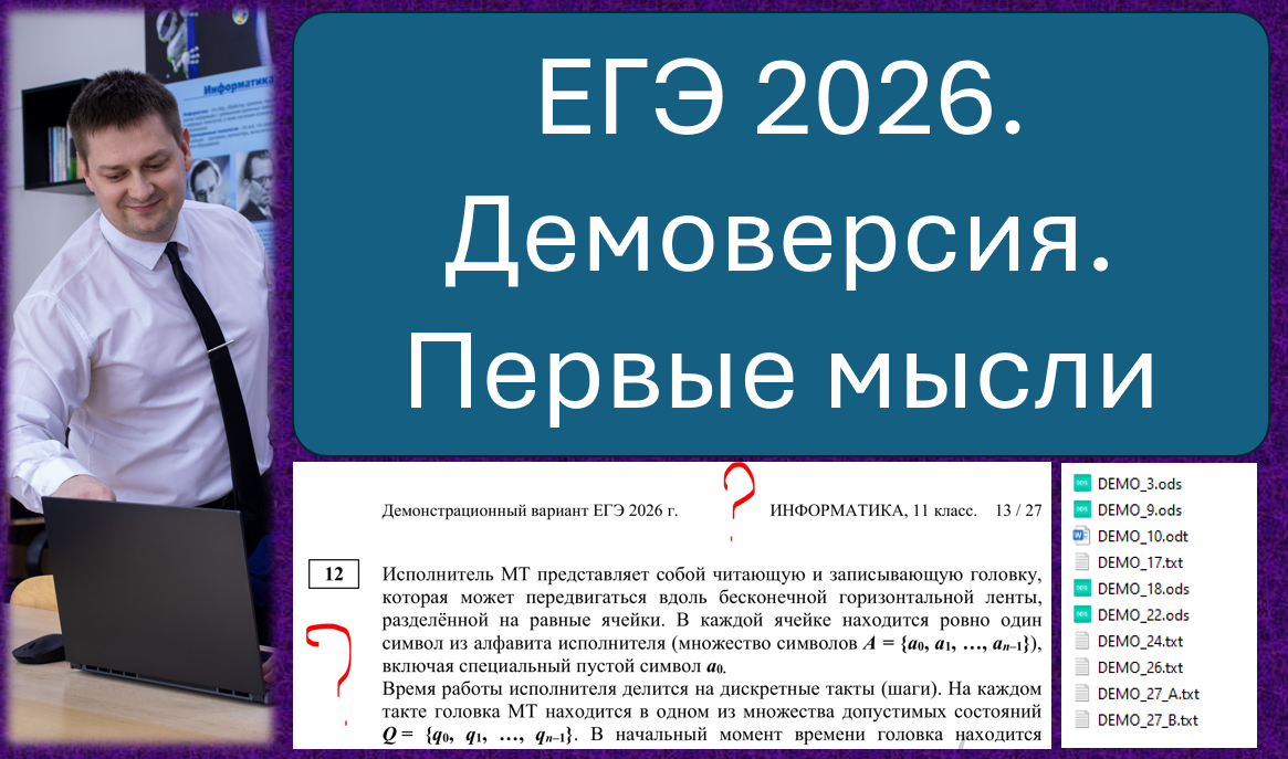 Опубликовали демоверсию ЕГЭ по информатике 2026. Коллеги, давайте посмотрим на новшества этой демки.