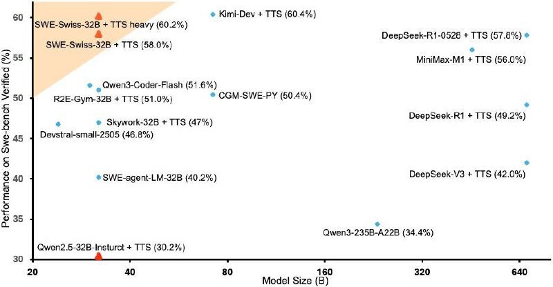 🚀 Meet SWE-Swiss: the secret sauce for training LLMs to squash bugs faster than you can say "debug"! Introducing SWE-Swiss-32B, a powerhouse with 32 billion parameters, fine-tuned for efficient software problem-solving. Here’s the recipe for success: - **Multi-Task Fine-Tuning + Reinforcement Learning** – we teach our model multiple skills and boost performance through RL. - **Key Skills:** - Error localization (files) 🕵️♂️ - Patch generation 🔧 - Unit test creation 🧪 In tests on SWE-bench Verified, this model performs like a champ, rivaling top-tier closed models—all while being middle-sized! Why it rocks: - **Available on Hugging Face under MIT license** 🥳 - **Built with transformers** – easy peasy integration into your pipeline! What’s the takeaway? SWE-Swiss shows how clever combos of multitasking and RL can tackle tough challenges, making LLMs more accessible and effective for developers everywhere! 💡💻