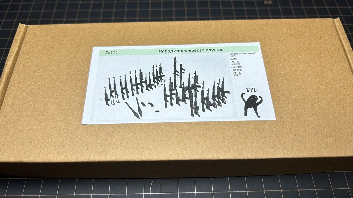 Московская ЪУЪ выпустила на 3D-принтере набор моделей стрелкового оружия в масштабе 1/35: АКС, АКМ, АК-74, АКС-74, АК-74М, АК-103, АК-12, РПГ-7, гранаты, выстрелы, магазины на 30 патронов 7.62х39, магазины на 30 патронов 5.45х39.
