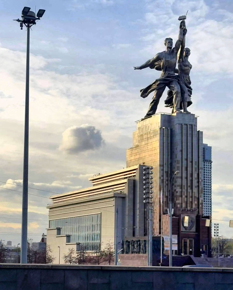 В 2024 году мы с детьми приехали в Москву. По традиции отправились на ВДНХ. Издалека увидели монумент «Рабочий и Колхозница».
