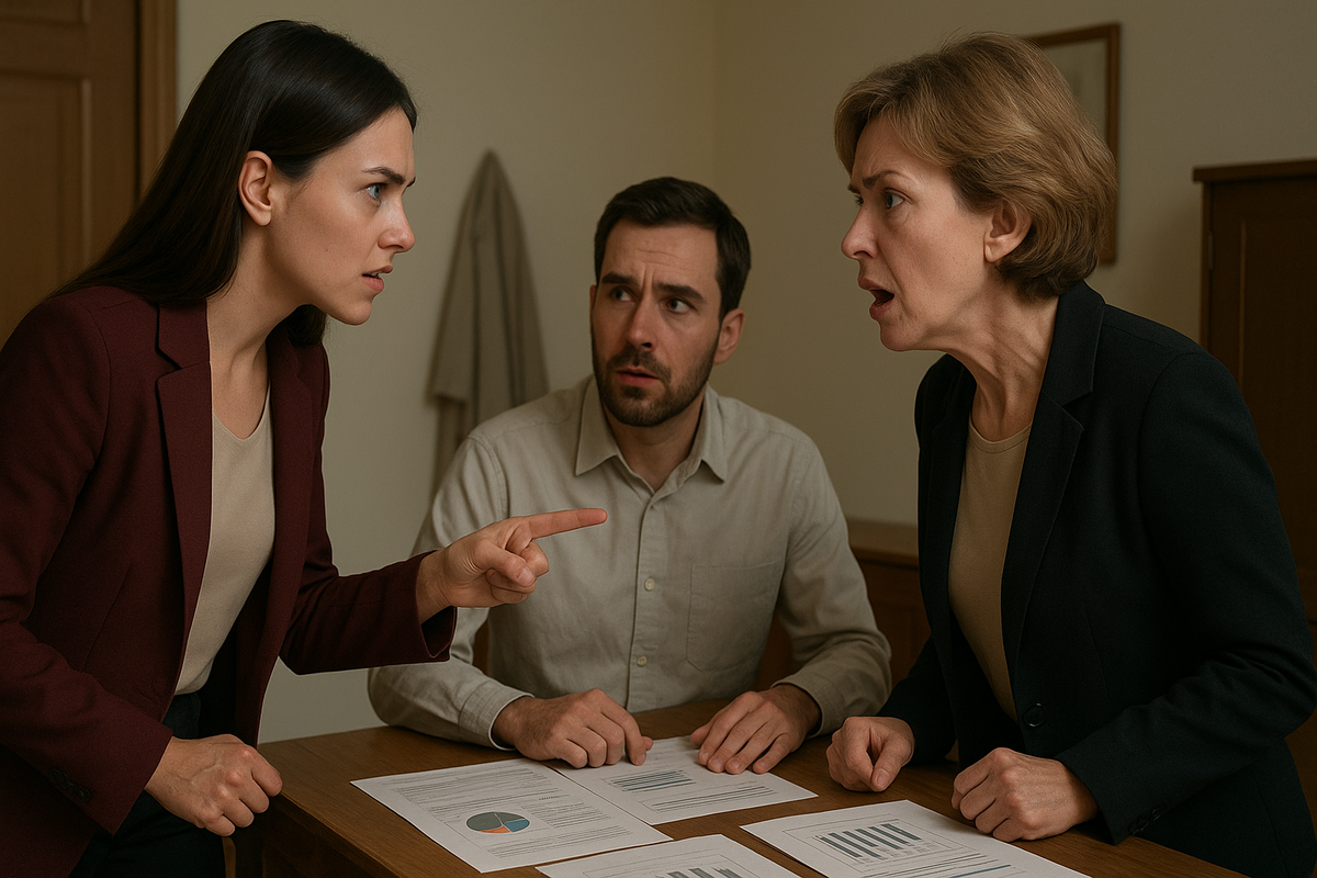 — Это моё наследство, и только моё. А твоей матери туда соваться нечего! Валерия толкнула дверь и на секунду застыла. В прихожей — чужая обувь: узкие лакированные туфли с вызывающе острыми носами. Она узнала их сразу. Елена Викторовна. Свекровь. Опять заявилась без звонка. Силы моментально покинули её. Рабочий день длился бесконечно: десять часов в офисе, споры, отчёты, дедлайны. И теперь — это. Она молча сняла каблуки, аккуратно повесила пиджак и направилась на кухню, заранее готовясь к неприятностям. Ожидания оправдались с лихвой. Дмитрий сидел за столом, уткнувшись в кипу распечаток: диаграммы, таблицы, графики. А рядом, будто в своём кабинете министров, восседала Елена Викторовна — с видом хозяйки положения. — О, Валюша, наконец-то пришла! — протянула свекровь с наигранной теплотой. — Мы только тебя и ждали. Валерия окинула взглядом бумаги на столе. Внутри неприятно кольнуло. — Что это? — спросила она ровным голосом. Дмитрий вскинул глаза, и Валерия сразу узнала этот блеск — слишк