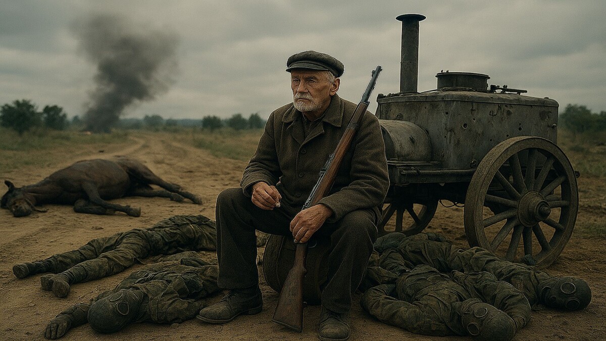 С самого начала Великой Отечественной войны на фронт угодил сибирский колхозник. Возраст у него был далеко не призывной — под шестьдесят, но в ту пору на передовую отправляли всех, лишь бы держать оборону. В его бумагах значилось: никогда не служил, военной специальности не имеет. Посчитали: раз деревенский, значит, с лошадьми управится. Так и определили его возницей при полевой кухне. Выдали ему старую трёхлинейку ещё с гражданской войны да подсумок с патронами — для вида. А главной его задачей стало доставлять горячую пищу бойцам. Казалось бы, работа не сложная, но крайне важная: солдат без еды – не солдат. Война войной, а обед по расписанию. Бывало, конечно, и задерживался. Но попробуй-ка не задержаться, когда сверху сыплются бомбы! Тут уж лучше довезти кашу хоть и холодную, но целую, чем подбирать с земли ошмётки из разбитой кухни. Так он и ездил около месяца. Однажды всё пошло как обычно: сначала завёз еду в штаб, потом направился к передовой. Дорога от штаба до окопов занимала ми