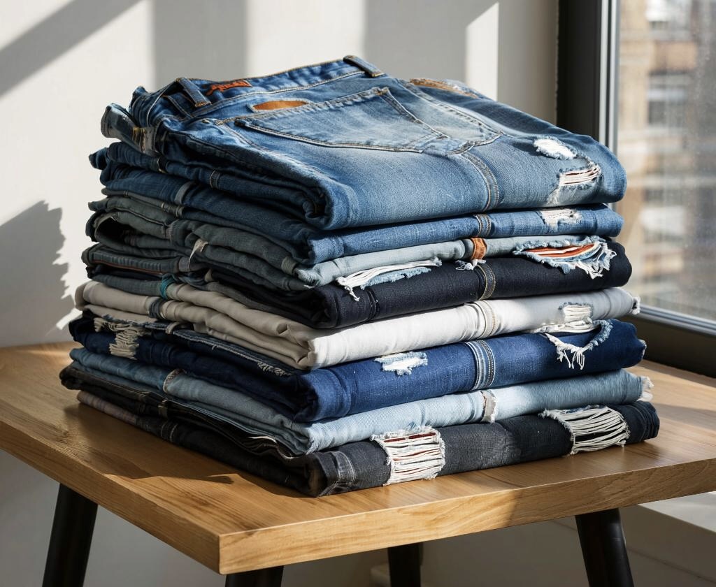 Если у вас скопились старые джинсы, не спешите их выбрасывать! Благодаря уникальным свойствам джинсовой ткани — высокой прочности, износостойкости и привлекательному внешнему виду — вы можете вдохнуть в них новую жизнь. Ниже представлены пять творческих идей, которые подарят вашим любимым штанам вторую жизнь. Простой способ изготовления удобной сумочки из задних карманов джинсов: Необходимые материалы: - Задняя часть старых джинсов; - Иглы и нитки или швейная машина; - Ремешок или ручка. Пошаговая инструкция: 1. Отрежьте задние карманы джинсов. 2. Соедините их лицевыми сторонами и прошейте по краям. 3. Пришейте ручку или ремешок к верхнему краю сумки. 4. Укрепите швы и обработайте срезы ткани. Готово! Ваша новая сумочка ждет вас! Эффективное решение для удобного хранения мелких предметов или инструментов: Материалы: - Остатки джинсов; - Плотная подкладка; - Ножницы и иглы. Процесс изготовления: 1. Выполните чертеж будущей конструкции органайзера. 2. Сшейте необходимое количество карма