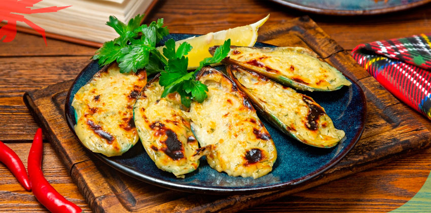 тарелку и удаляем у каждой раковины по одной створке. Пропускаем чеснок через пресс. Сыр трем на мелкой тёрке. В сотейнике