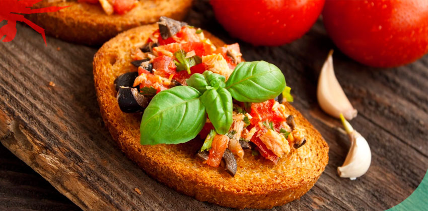 Ингредиенты: Смазываем хлеб маслом и кладем на противень. Отправляем в разогретую до 180 °C духовку на 8–10 минут. Измельчаем рыбу вилкой. Нарезаем помидоры и оливки кусочками.