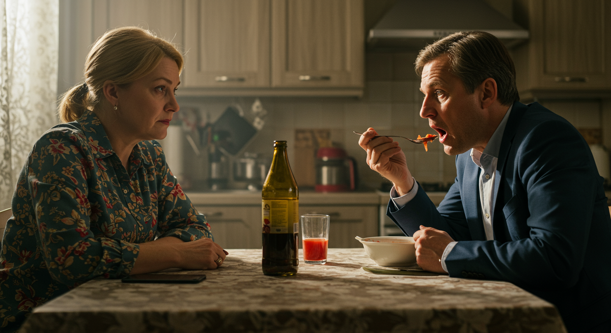 Сергей был дома. Он сидел на кухне, в их большой, дорого обставленной квартире, и с аппетитом ел борщ. От него пахло успехом, дорогим парфюмом и сытостью. Он поднял на неё глаза, весёлые, немного снисходительные, как всегда.