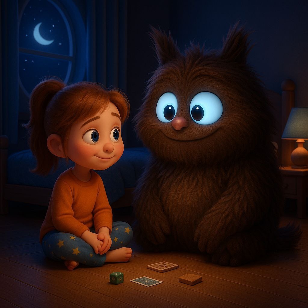 Сказка «Мохнатый друг» Жила-была девочка по имени Галя. Днём она была обычной школьницей: играла с подружками во дворе, бегала по лужам и каталась на качелях. Но стоило солнцу закатиться, как происходило нечто удивительное. Когда стрелки часов пересекали полночь, из темноты появлялся её особенный друг — Мохнатик. Он был пушистый, мягкий, будто сотканный из облаков и ночного тумана. У него были большие круглые глаза, которые светились, словно две маленькие луны, и смешной хвост, похожий на метёлку. Никто, кроме Гали, его не видел. Каждую ночь они встречались. Мохнатик умел рассказывать невероятные истории: про звёзды, которые спорят, кто из них ярче; про дождевые капли, которые соревнуются, кто быстрее скатится по стеклу; про облака, что превращаются в драконов и летают над морями. А ещё они вместе придумывали игры. Иногда рисовали воображаемые картины прямо на небе, иногда прятались от луны за кустами в саду, а порой вместе запускали бумажные кораблики по ручью, который тихо журчал
