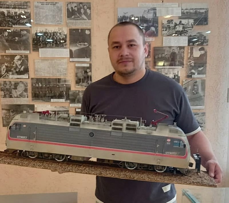 ☁️ Музей истории Красноярской железной дороги на станции Боготол пополнил свои фонды уникальной моделью электровоза ЭС5К «Ермак». 👍 Эту модель, сделанную собственными руками, передал в дар музею машинист электровоза эксплуатационного локомотивного депо Ачинск-1 Сергей Таран. 🚄 Модель «Ермака» – далеко не первый ставший экспонатом боготольского музея подарок умельца-машиниста. Изготовлением своих шедевров Сергей увлёкся ещё в 2018 году. Первой моделью, переданной в музей, стала копия польского паровоза Ту23 в масштабе 1:25 – это было четыре года назад, в 2021-м. С тех пор мастер только совершенствует навыки и присматривается к 3D-моделированию – чтобы задействовать не только бумагу, картон и клей, но и приобщиться к новым технологиям. Работа с моделями практически ювелирная и очень трудоёмкая – к примеру, копию «Ермака» Сергей делал почти полтора года. Бумага – материал многоликий и интересный для экспериментов: в зависимости от плотности, структуры, рельефа и пластических характер