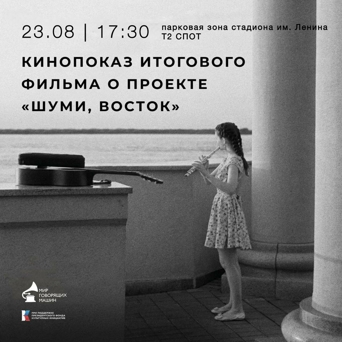 УЛИЧНЫЙ КИНОПОКАЗ «ШУМИ, ВОСТОК» НА T2 СПОТ СЕГОДНЯ 23.08 | СУББОТА | 17:30 парковая зона стадиона им. Ленина, Т2 СПОТ Год назад мы выпустили первый альбом хабаровской музыки на виниле и сегодня хотим вспомнить, как это было. 💌Приглашаем вас на бесплатный уличный показ документального фильма о проекте «Шуми, Восток» — исследовании музыкальной сцены Хабаровского края музеем «Мир говорящих машин». 📍В фильме раскрывается «внутренняя кухня» создания одноимённого музыкального проекта: от записи композиций до знакомства с самими исполнителями. Вы услышите 12 треков в жанрах фолка, рока, авторской песни, неоклассики, инди и музыки коренных народов — всё это создаёт яркий портрет региона. «Шуми, Восток» — это не просто музыка, а история о людях, их чувствах, взглядах и любви к родному краю. 🎥Приходите, ляжем на подушки и под открытым хабаровским небом услышим, как шумит Восток! 📍Для зрителей мы приготовили розыгрыш с подарками от музея.
