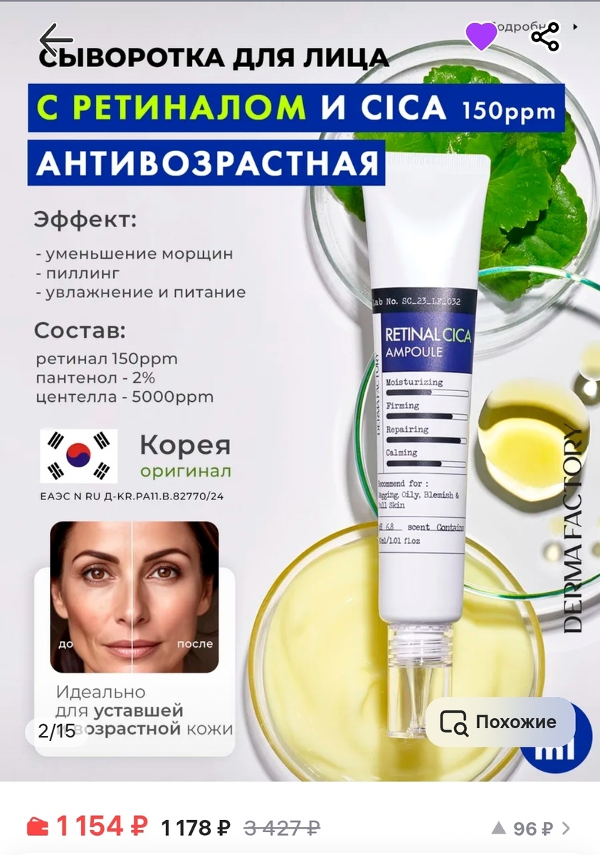 Сыворотка для лица увлажняющая антивозрастная с Ретинолом