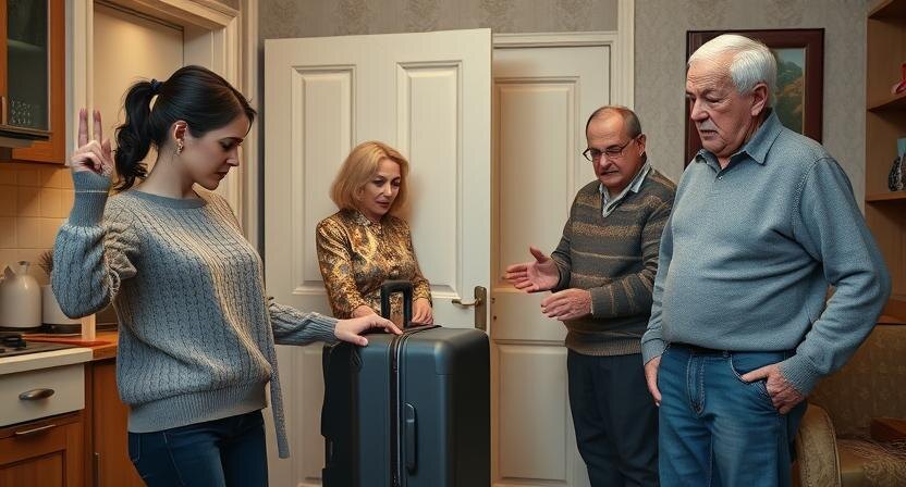 Он стоял, растерянный, будто мальчик, которого выставили с урока. Потом медленно взял чемодан. Галина Петровна кричала, ругалась, пыталась схватить Настю за руку, но та оттолкнула её.