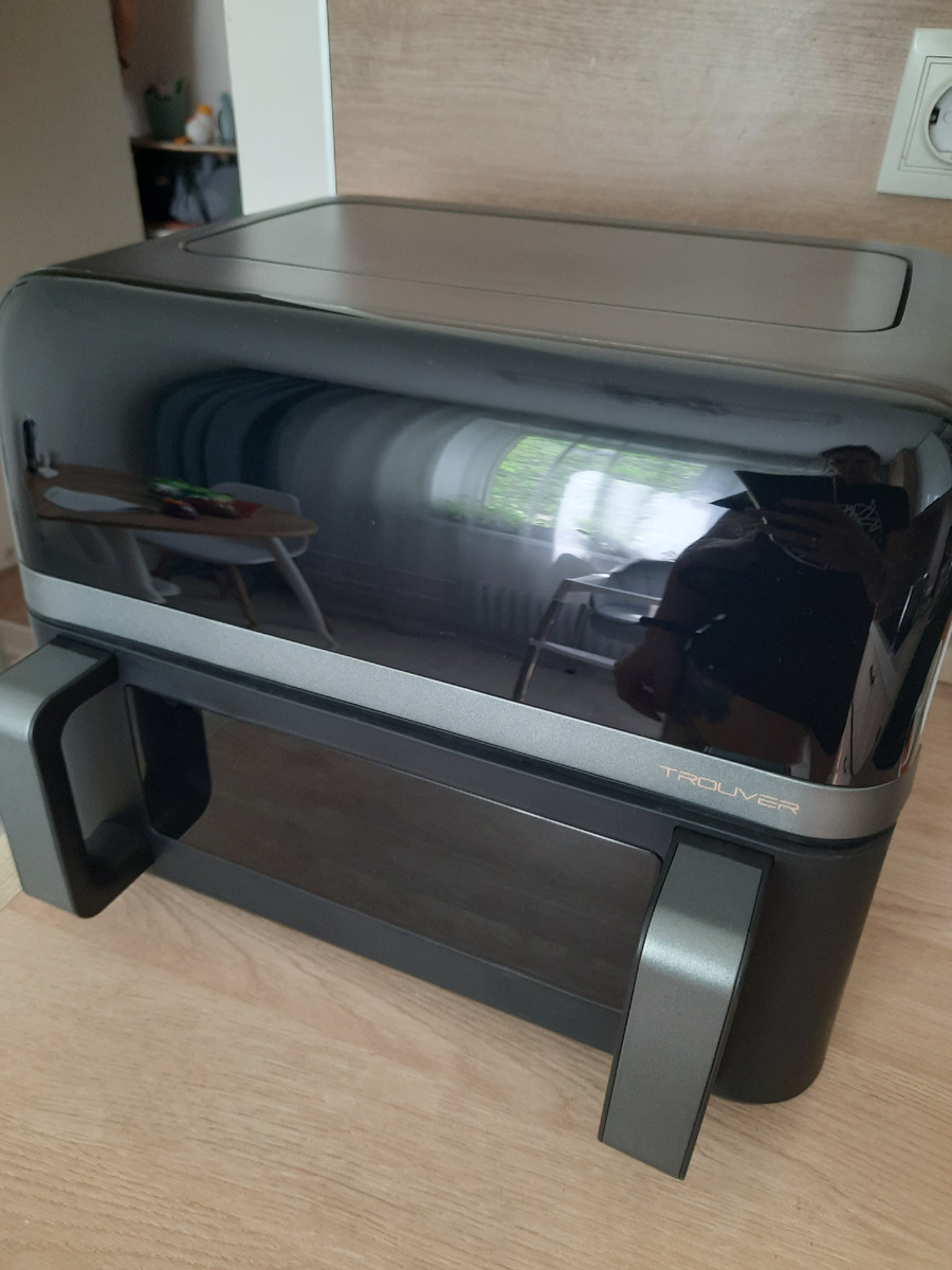 (Отражение супер 🥲😂) Обещала написать отзыв на чудо-машину — аэрогриль. Предыстория, если не интересно, то можно пропустить и перейти сразу к следующему посту. О покупке аэрогриля я задумалась давно, когда пошел тренд по всем видеоплатформам типа «ТикТока», «Рилс», «Видео ВК». Наверняка вы тоже помните, как многие показывали, какое вкусное мясо они достают из этой штуковины. Но первое время, когда был тренд, я думала, нужно время, чтобы вышло больше моделей, стало больше характеристик, и вот прошло уже достаточно много времени, появились они разные: объёмные/маленькие, с программами/просто с регулировкой. Мы с мужем смотрели, смотрели, думали, думали и надумали то, что в нашей семье три человека и маленькая нам точно не подойдет, в общем, взяли: Чаша. большая, удобно то, что превращается из двух стандартных в одну большую. Причем превращается легко, просто нужно убрать перегородку. Мощность: огонь, потому что даже сравнивая с некоторыми именитыми брендами, которые мы рассматривали