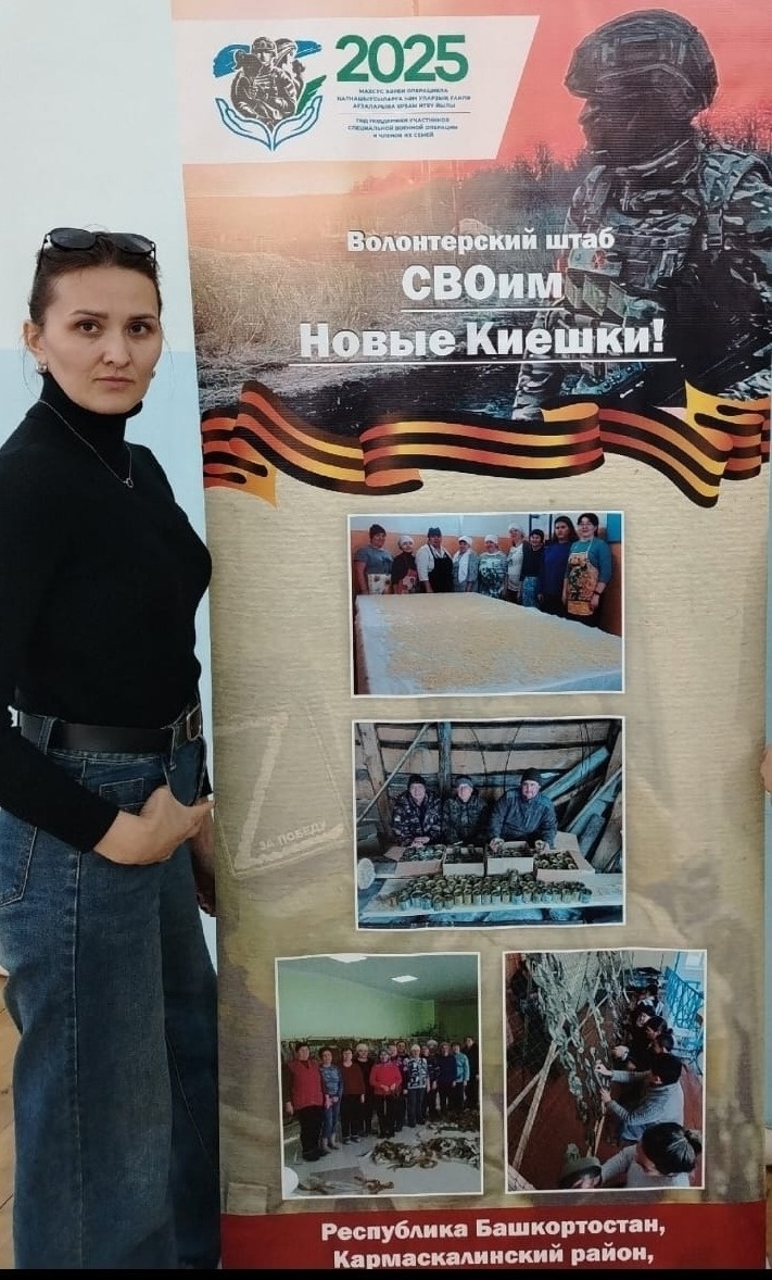 На странице Кармаскалинского района в соцсетях рассказали о Регине Биккуловой — активистке волонтерского штаба «СВОим Новокиешки». Ее жизнь сильно изменилась в июле прошлого года, когда она узнала об исчезновении мужа в зоне ведения спецоперации. Тогда она начала поиски супруга, пришла в центр волонтерского движения и стала активным его участником. Первым большим шагом Регины Биккуловой стало приобретение двух квадрокоптеров для военнослужащих. Она смогла их приобрести благодаря объединению усилий с единомышленниками, друзьями, знакомыми, неравнодушными людьми. Следующим важным шагом в ее жизни стала поездка с гуманитарной помощью в Донецк. Вместе с родственниками она доставила все необходимое, что просили военнослужащие на передовой. Поездка вдохновила ее на создание штаба «СВОим Новокиешки» в октябре прошлого года. С этого времени активисты ее штаба активно начали помогать бойцам: изготавливать для них маскировочные сети, покупать медикаменты, готовить домашнюю лапшу и печь баурсаки.
