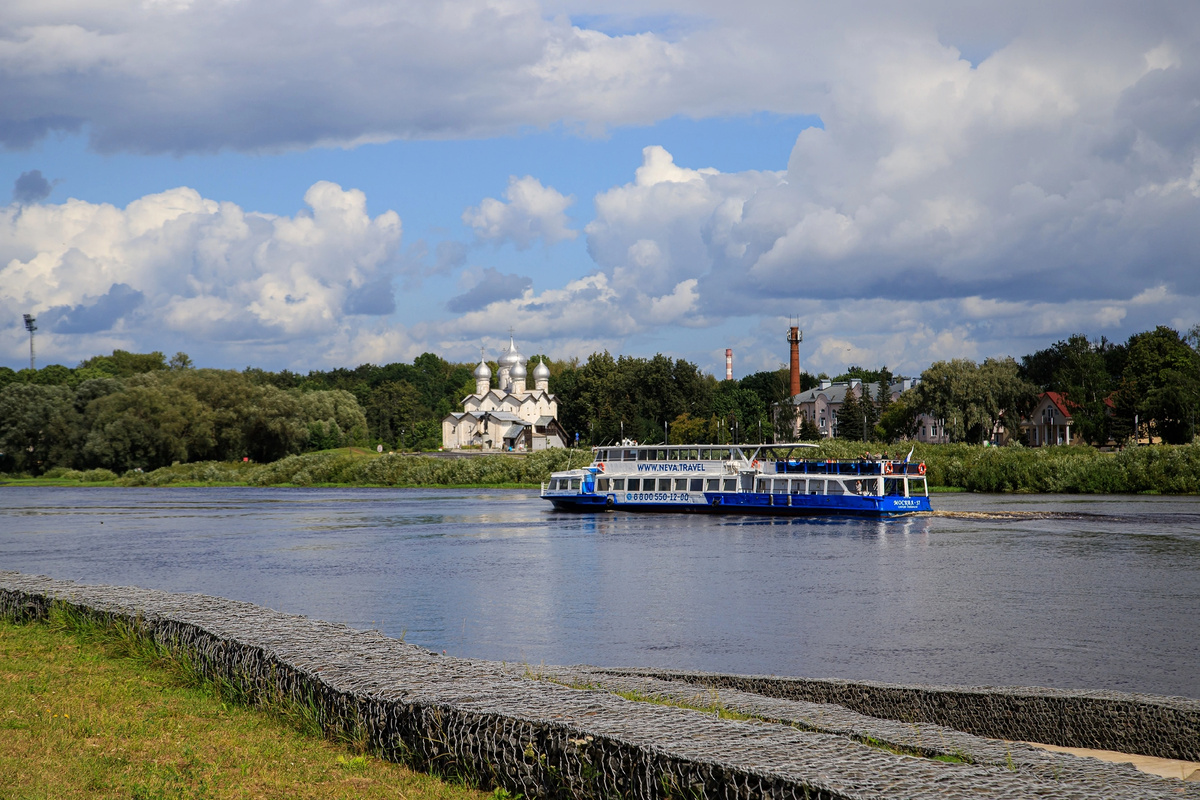 На новгородской набережной Волхова сюжеты, появляющиеся на каждом шагу, занимательны настолько, что, рассматривая, можно опоздать на теплоход,