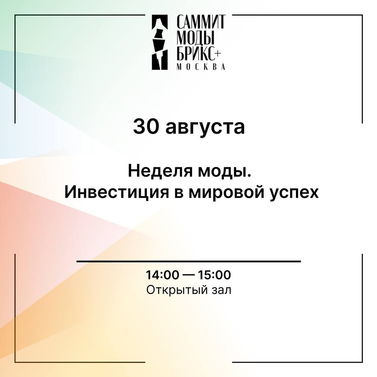 Сессия деловой программы BRICS+ Fashion Summit «Неделя моды. Инвестиция в мировой успех» пройдёт 30 августа в 14:00. (Зал «Открытый») Спикеры сессии: основатель и президент Athens Fashion Week Тоня Фоусеки, основатель и креативный директор Arka Fashion Week Асад Саттар, основатель Belarus Fashion Week Янина Гончарова, CEO Kazakhstan Fashion Week Саят Доссыбаев, основатель Alexandra Serova Александра Серова, директор Valencia Fashion Week Серхио Пуч. Попасть на деловую программу BRICS+ Fashion Summit (Саммит Моды БРИКС+) могут все желающие по предварительной регистрации на официальном сайте.