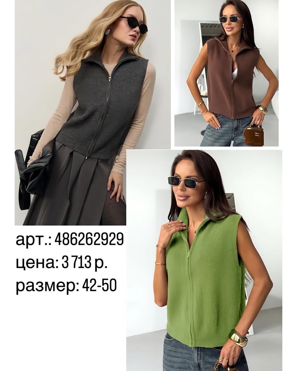 1) Трикотажный жилет на молнии (арт. 486262929, 42–50, 3713 ₽)