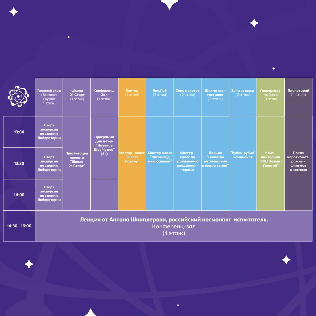 Открытие «Лаборатории» уже сегодня! Делимся с вами программой: гостей ждут интерактивные зоны, увлекательные экскурсии и мастер-классы. Сохраняйте её и отправляйте друзьям. #Юбилей_для_людей #НУРу50лет ⚡️⚡️⚡️⚡️ В 13:00 состоится квиз-викторина «Pro Новый Уренгой». Регистрация ЗДЕСЬ. Смотрите нашу афишу на выходные ЗДЕСЬ. 📸 Лаборатория ❤️ Импульс Севера